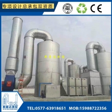 洗滌塔系統(tǒng)之風機組將廢氣吸入洗滌塔內(nèi),流經(jīng)填充層段(氣、液接觸反應之介質(zhì)),使廢氣與填充物表面流動的藥液(洗滌液)充分接觸,以吸附廢氣中所含的酸性或堿性污物。洗滌后,廢液收集至集水槽中,排放至廢水系統(tǒng)處理。
